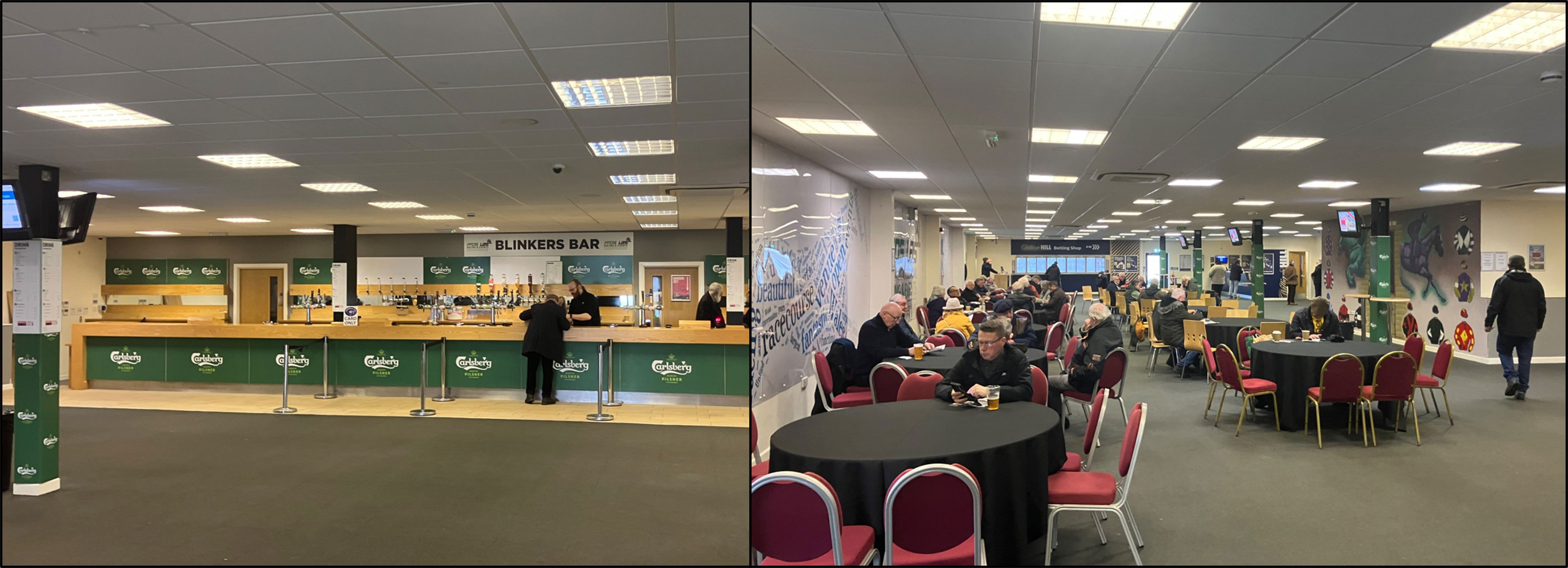 The only bar on the racecourse is Blinkers Bar, which is inside the main grandstand.