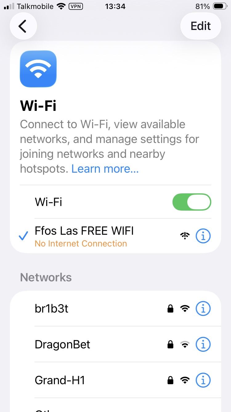 Internet Access: Surprisingly and disappointingly, on the day of our visit, there was no free WI-FI access available on the course (see picture below).