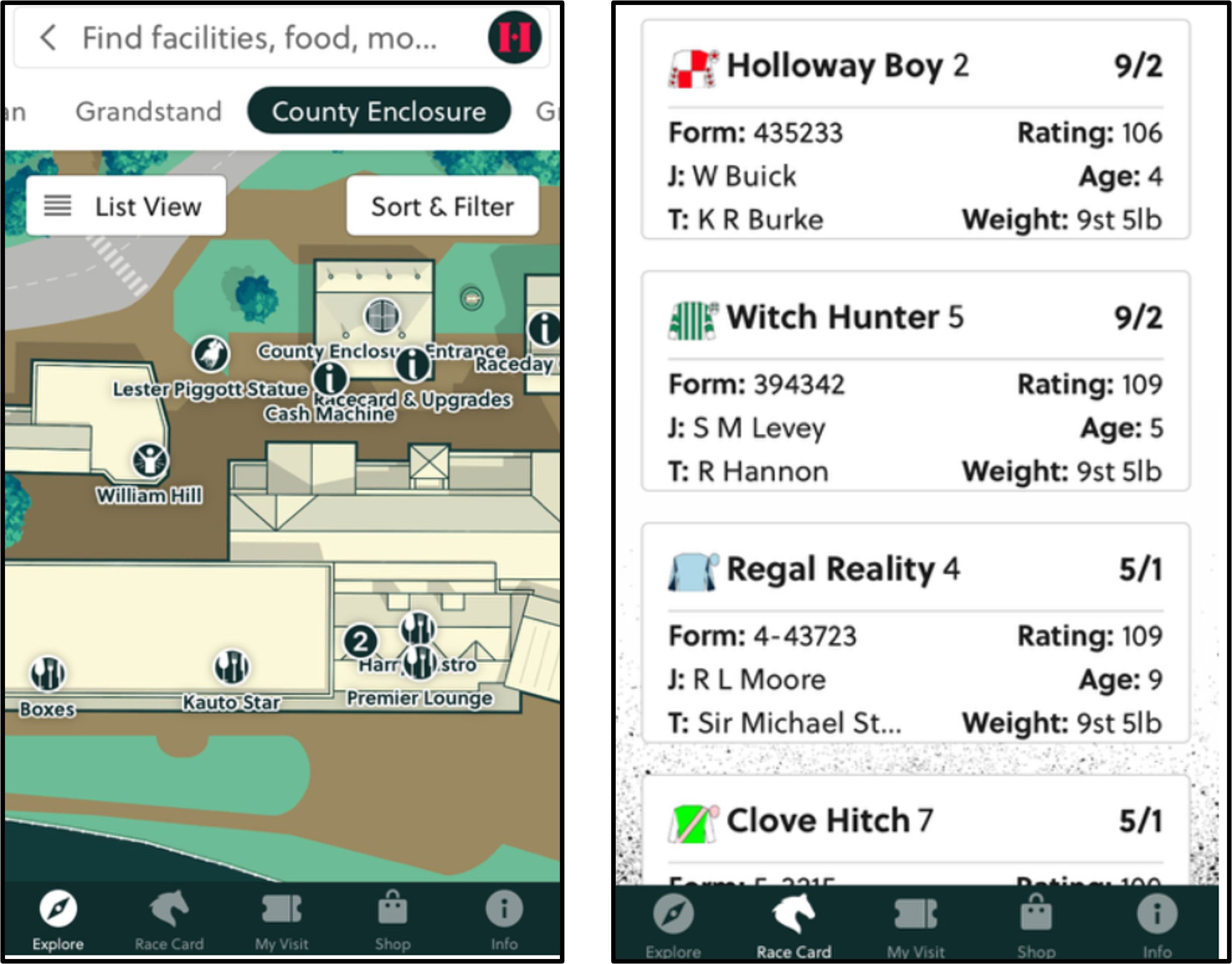 There was also a fantastic interactive map feature that showed your actual position on the course, and by tapping the screen, you could see which facilities were nearby, and if you needed more information, you could tap on the facility on the screen. The App was intuitive and well laid out. We liked it, so well done, the Jockey Club. We can see from the App Store that other Jockey Club courses also offer this App. Future improvements to the App may mean the printed racecard eventually has its day? The App can be downloaded from your respective App Store. Rating: 8/10.