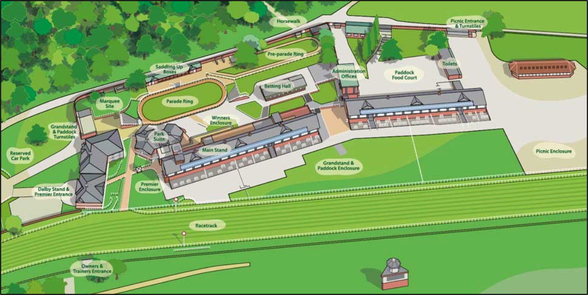 Facilities & Course Layout Map (image acknowledged & credited to Pontefract Race Park Co. Ltd.)